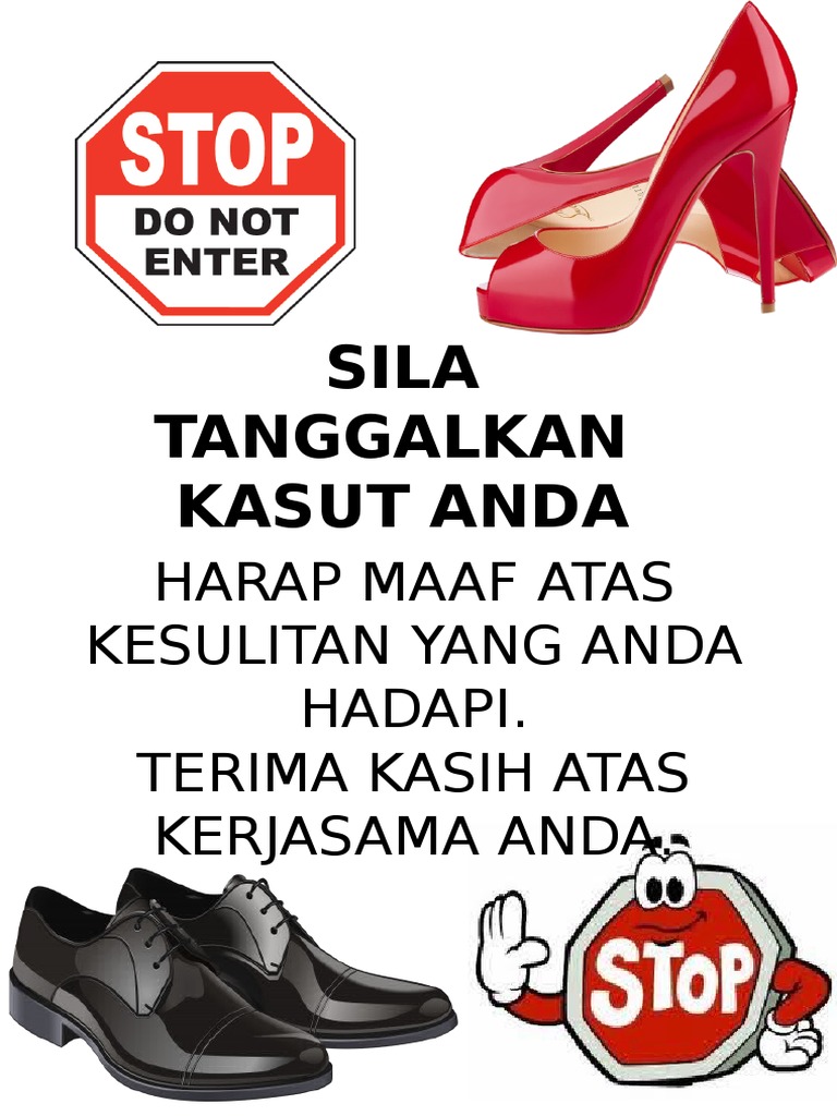 Please open your mind for positive thinking. Print4u shoe off sign sila tanggalkan kasut remove your shoe floor sticker. Unduh sebagai doc pdf txt atau baca online dari scribd.